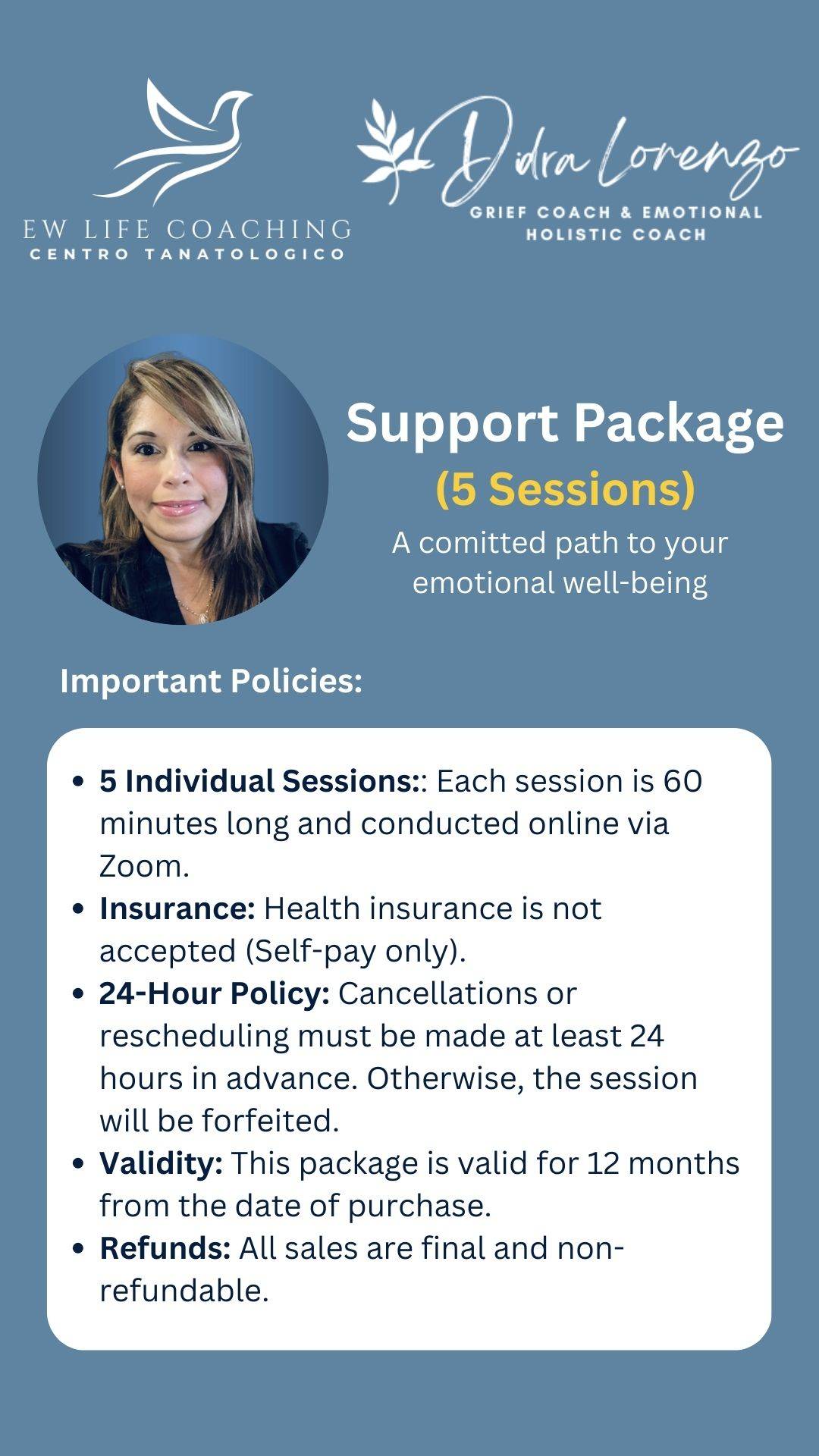 "Together, we will create a steady, safe, and empathetic space to gently explore your emotions through online sessions. This 5-session journey is designed to provide you with consistent support and tools as you navigate your emotional healing."